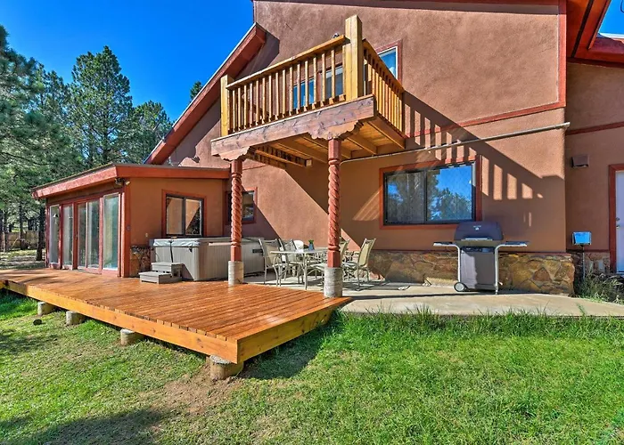 La Angel Fire Mountain Cabin With Hot Tub And Sauna! ofrece vistas al jardín y se encuentra relativamente cerca del río Red. Esta villa ofrece a sus huéspedes una experiencia relajante con un jacuzzi y una sauna.